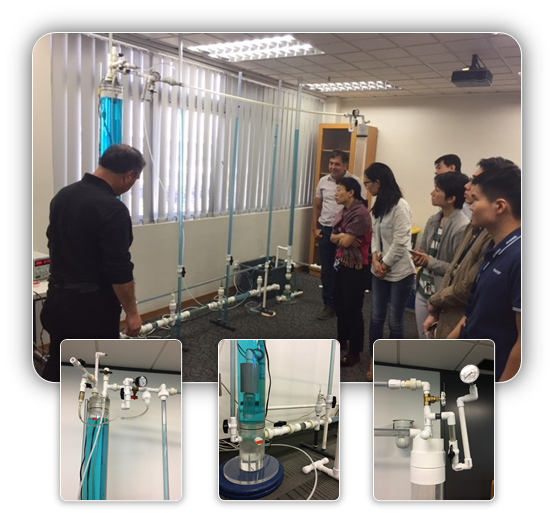 The oil well simulator is a physical simulator that uses water and air in place of oil and gas to demonstrate many operations in a real well. The configuration of the simulator enables visualizing the reservoir, wellbore, flowlines, choke performance, and common artificial lift systems. Additionally, the effect of damage removal, pump speed, gas injection rates, and downhole pressure can be analyzed to create optimization opportunities.